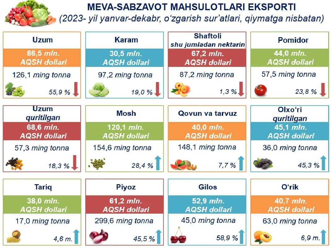 Статистика агентлигига кўра, мева-сабзавот маҳсулотларининг асосий экспорт бозори: