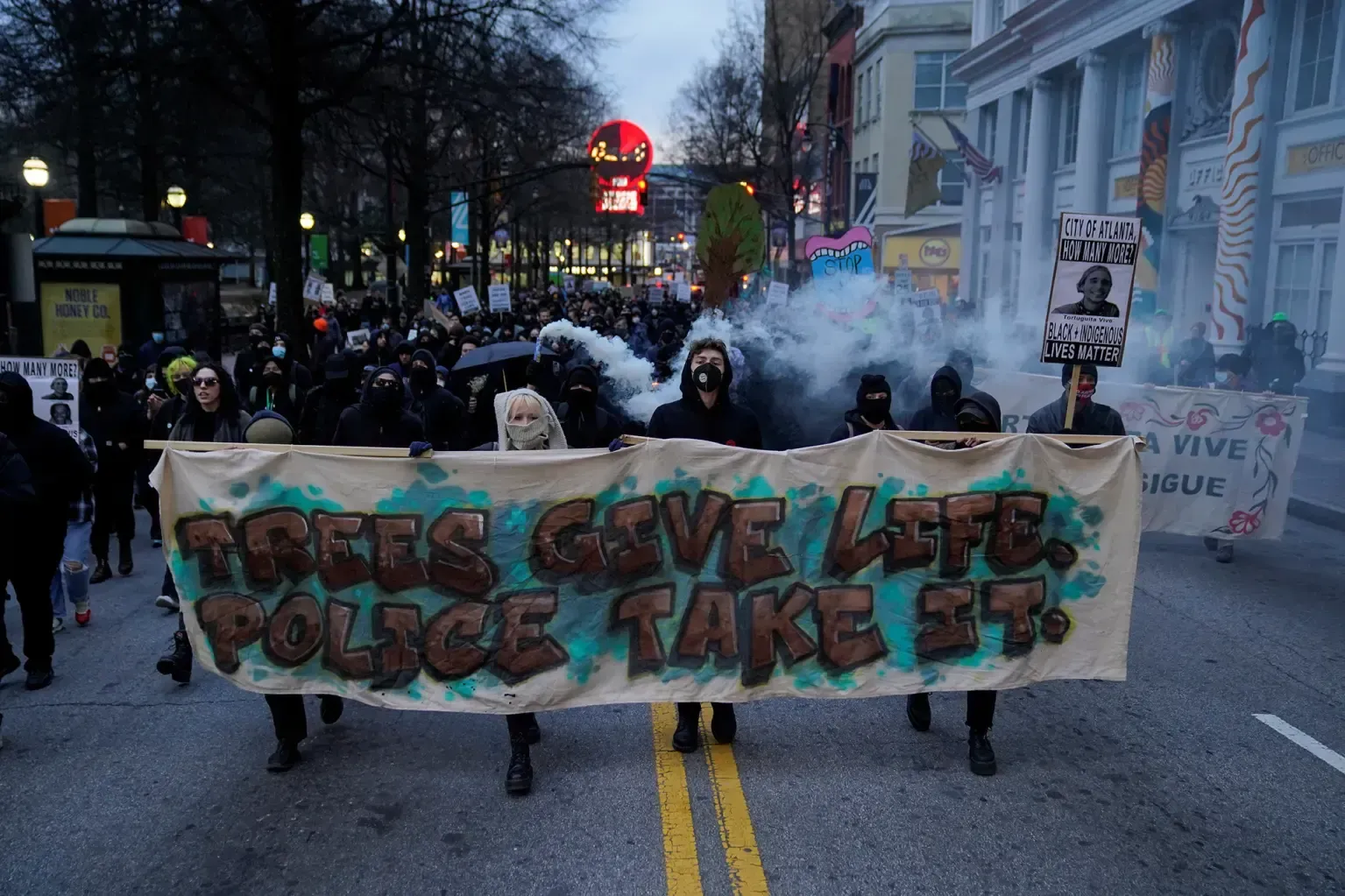 Намойиш "Атланта ўрмонидан саҳналар" деб номланган гуруҳ чоршанба куни ижтимоий тармоқда "қасос олишга" чақирган постини қўйганидан кейин содир бўлди.