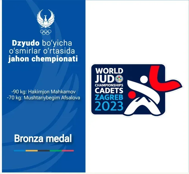 Хорватияда дзюдо бўйича ўсмирлар ўртасидаги жаҳон чемпионатининг яккалик беллашувлари ниҳоясига етди. Ўтган кун беллашувларида Ўзбекистон терма жамоаси ҳисобига яна 2 та бронза медали ёзиб қўйилди.