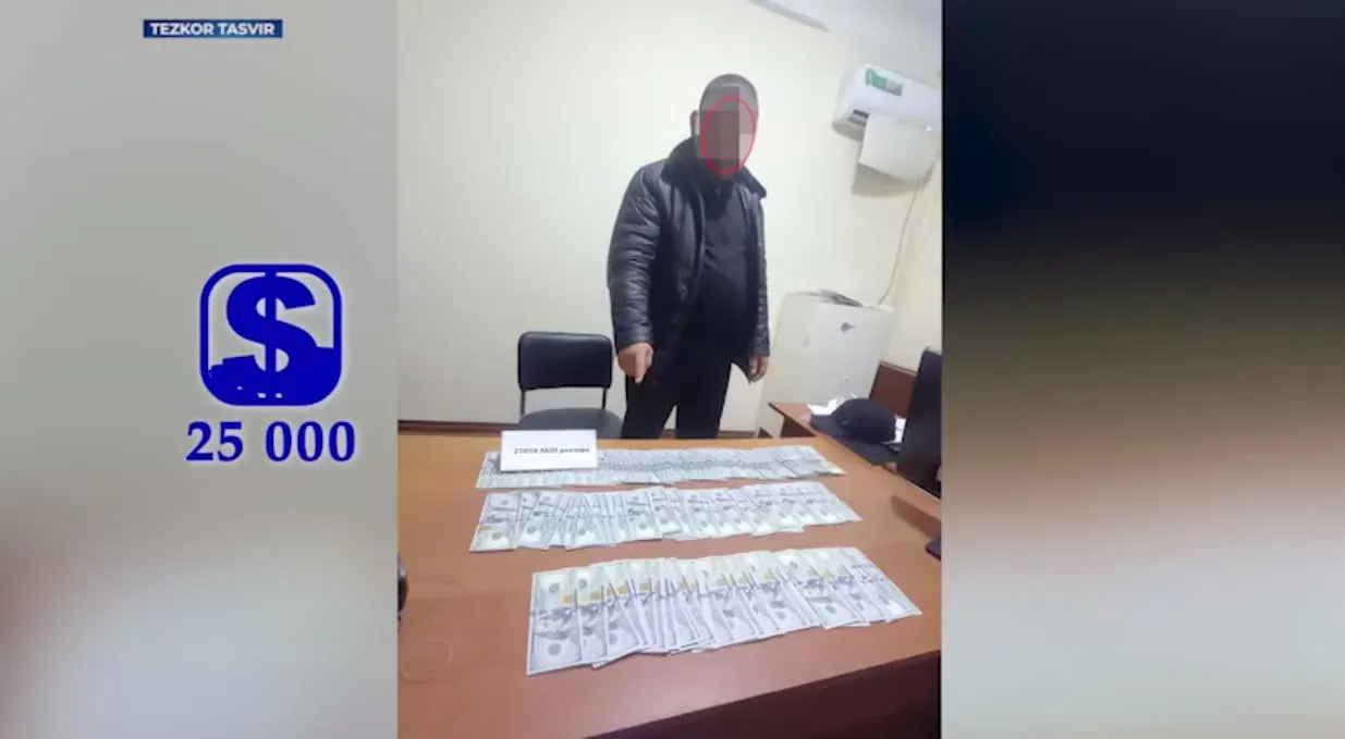 Риштон туманида яшовчи, 1986 йилда туғилган шахс давлат захирасидаги 12 сотих ер майдонини мансабдор танишлари орқали харидорга олиб бериш эвазига 25 минг АҚШ доллари талаб қилиб, олдиндан 15 минг АҚШ доллари олган вақтида ушланди.
