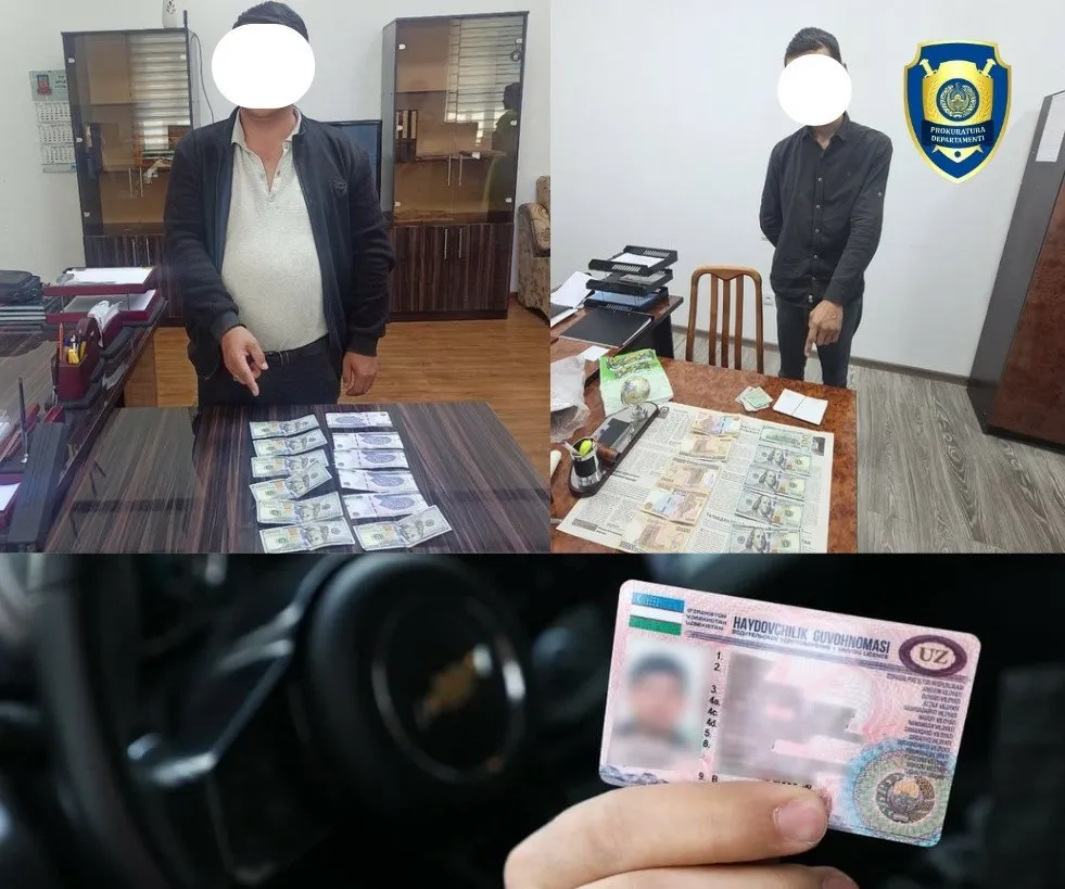 Бош прокуратура ҳузуридаги Департаментнинг Урганч тумани бўлими томонидан ИИБ ходимлари билан ҳамкорликда ўтказилган тезкор тадбирда, фуқаро С. И. 2 нафар фуқаронинг ишончига кириб, уларни танишлари орқали ҳайдовчилик гувоҳномасини олиш учун бўлиб ўтадиган имтиҳондан ўтказиб қўйиш эвазига 700 АҚШ доллари ва 1,1 млн сўмни олган вақтида ашёвий далиллар билан ушланган.