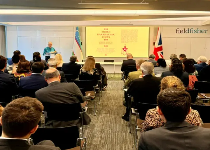 Ўзбекистон элчихонасида “Британия-Ўзбекистон” жамияти билан ҳамкорликда таниқли британ шоири Эндрю Станиленд томонидан илк бор инглиз тилида нашр этилган қорақалпоқ шеъриятига бағишланган “Three karakalpak poets” (“Уч қорақалпоқ шоирлари”) номли китобнинг тақдимоти ташкил этилди. Бу ҳақда “Дунё” ахборот агентлиги хабар берди.