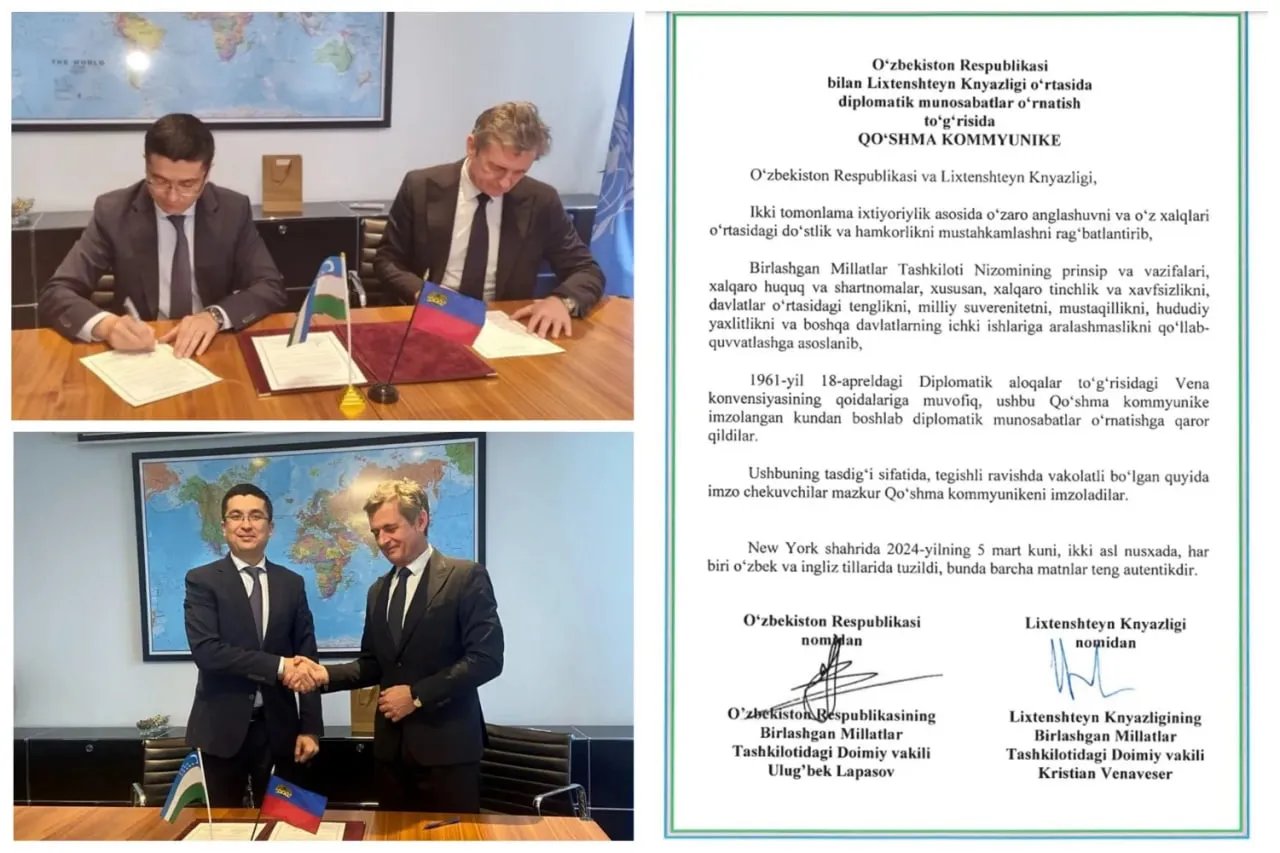Шу тариқа, Лихтенштейн Ўзбекистон билан дипломатик муносабатлар ўрнатган 146-давлатга айланди.