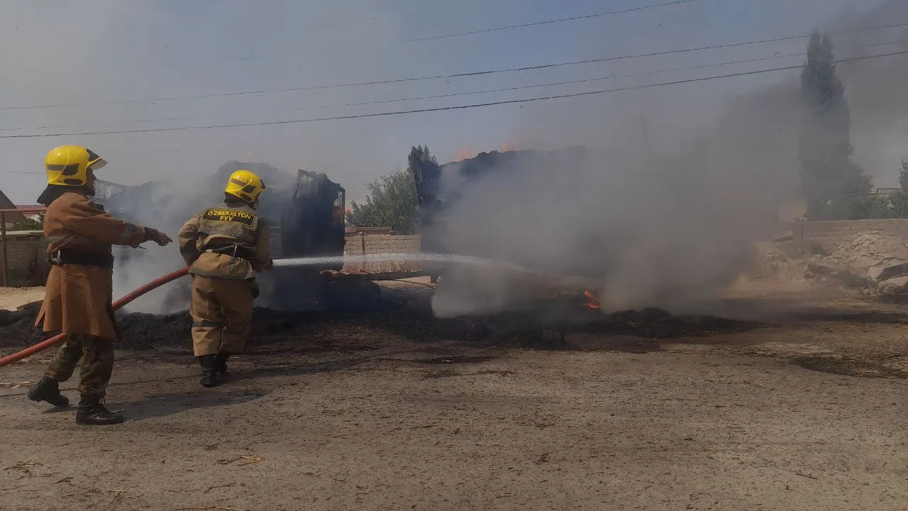 Хабарга кўра, воқеа жойига 2 та ёнғин-қутқарув бўлинмаси жалб қилиниб, ёнғин 14:55 ларда тўлиқ ўчирилган. Ёнғин оқибатида трактор, унинг 3 та тиркамаси ва унга ортилган сомон боғламлари тўлиқ ёнган.