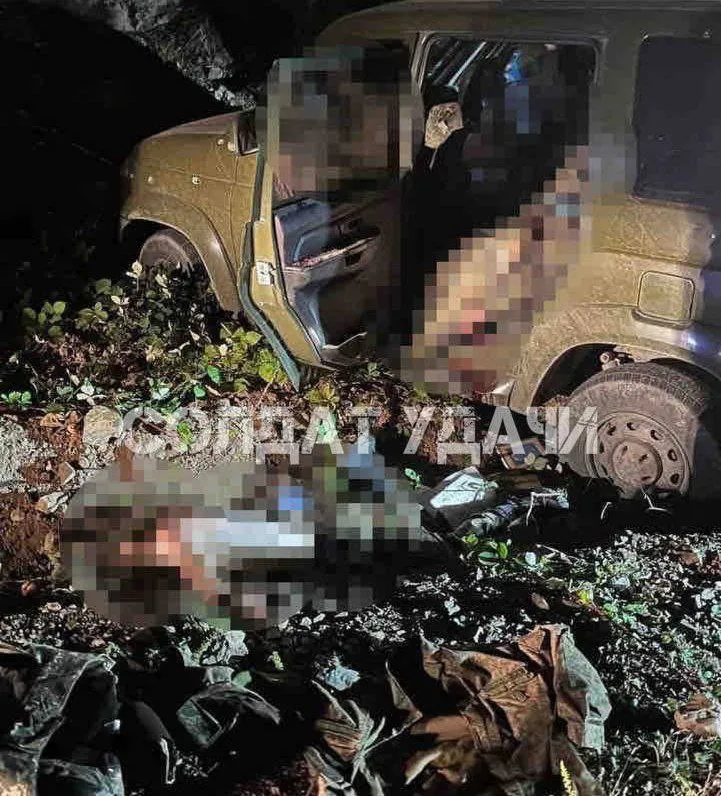 Россия Телеграм-каналлари Россия тинчликпарвар кучларининг ўққа тутилган машинаси акс этган суратларни тарқатди.