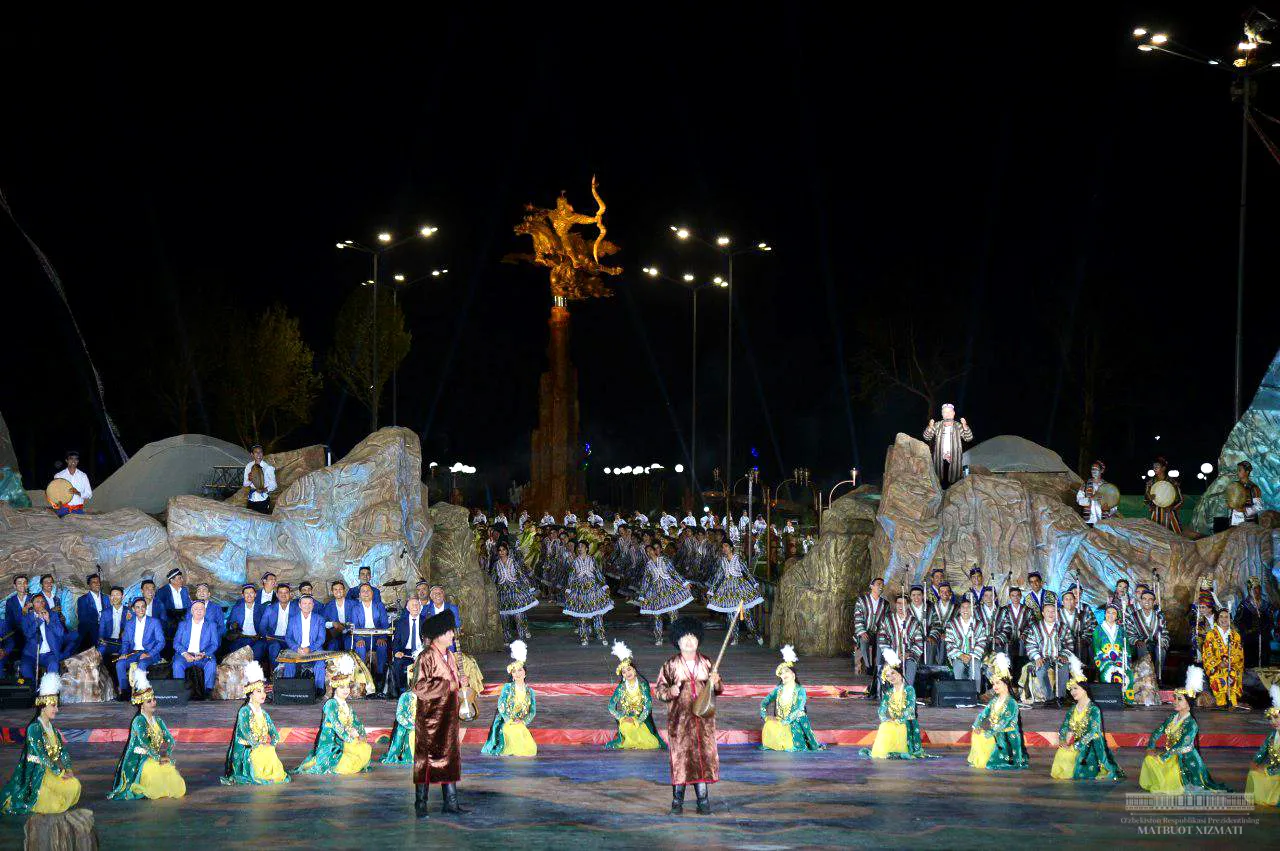 Бугунги санъат байрамида иштирок этаётган нуфузли халқаро ташкилотлар ва қардош мамлакатлар вакилларига, дунёнинг қирқдан зиёд мамлакатидан келган халқ ижодиёти намояндалари, атоқли маданият ва санъат арбобларига самимий ташаккурим, юксак ҳурматим ва эзгу тилакларимни билдираман.