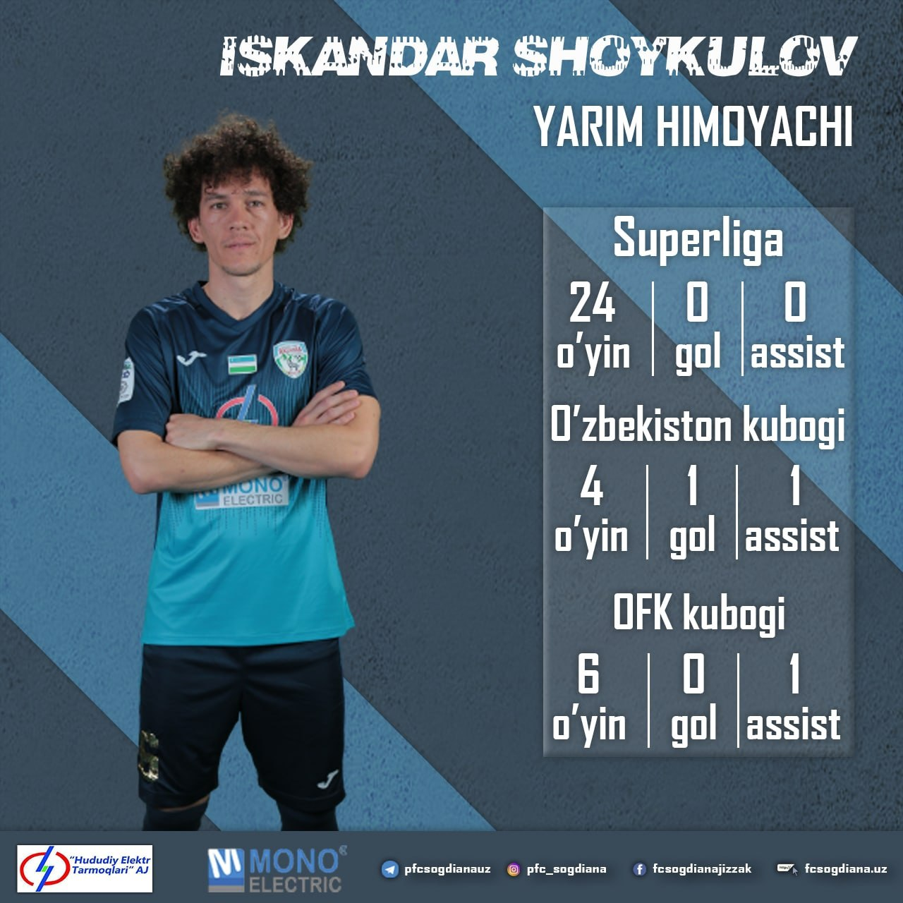 Маълумот учун Искандар Шойкулов жорий йилда жами 34 та баҳсда иштирок этиб, 1 та гол 2 та голли узатмага муаллифлик қилди.