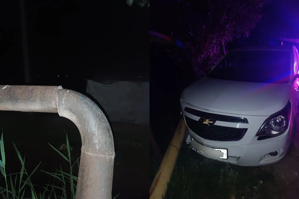 Тошкентнинг Бектемир туманида Cobalt автомобили ўрта босимли газ қувурига урилиб, газ сизиб чиқишига сабаб бўлди.