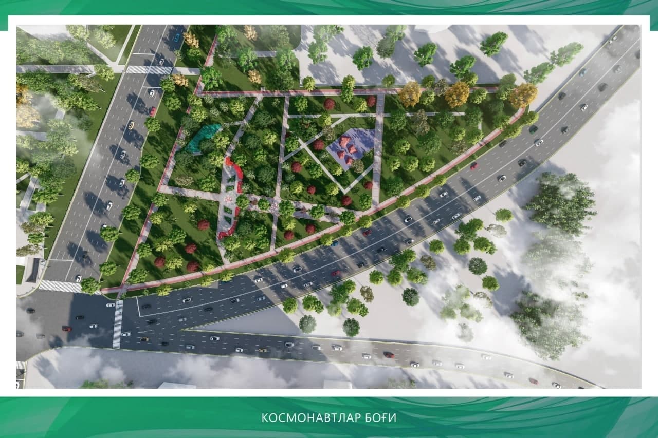 Янги боғда, “Жемчуг” ва ИИВ оралиғидаги ҳудудда пиёдалар ва велосипед йўлаклари ташкил этилади, болалар майдончалари ўрнатилади ва аҳоли талабига кўра, бошқа қулайликлар яратилади.