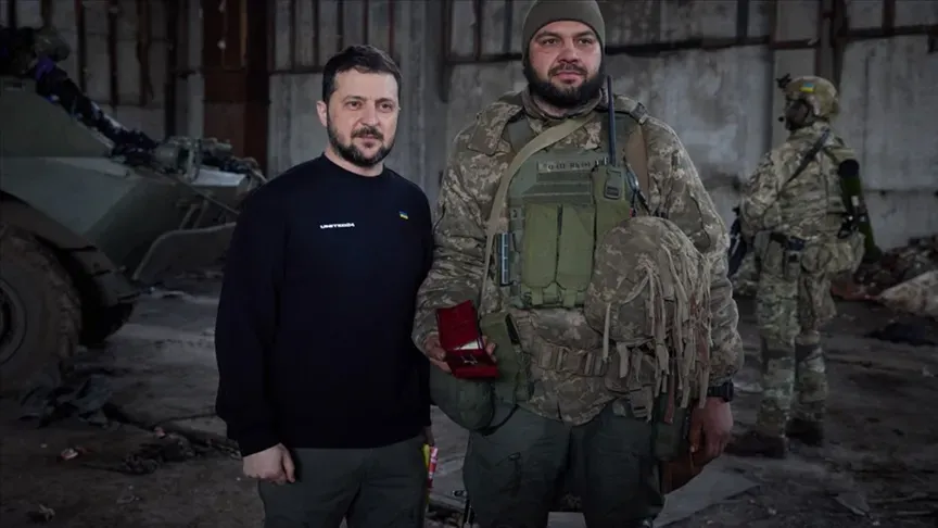 Зеленский фронтдаги аскарларга “давлат медали”ни тақдим этганини қайд этиб, “Бугун бу ерда бўлиш ва қаҳрамонларимизни тақдирлаш мен учун шараф” деди.
