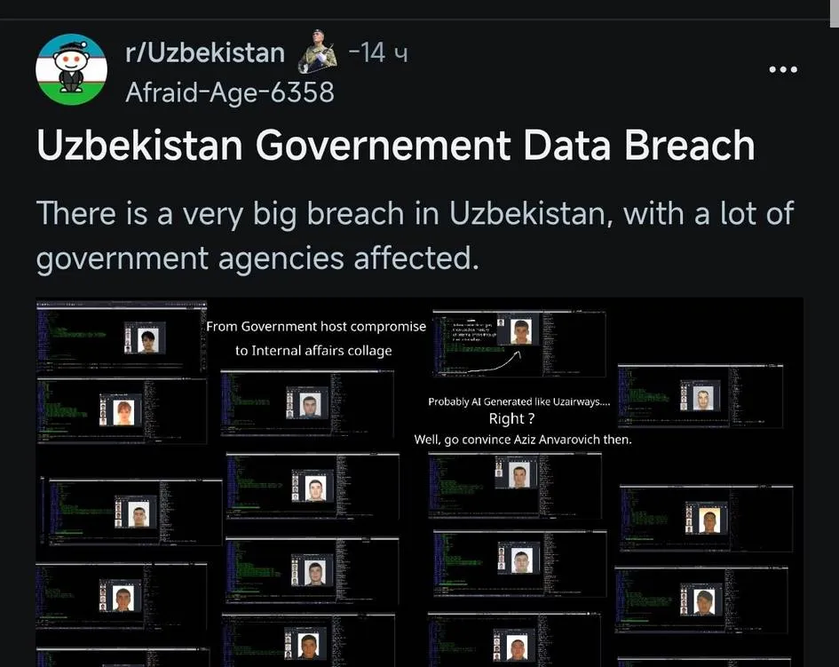 Ijtimoiy tarmoqlarda hukumat tizimlariga qarashli veb-sahifalardan 15 million nafar O‘zbekiston fuqarosining shaxsiy ma’lumotlari o‘g‘irlangani va “Dark Web”ga joylashtirilgani haqida xabarlar tarqaldi.