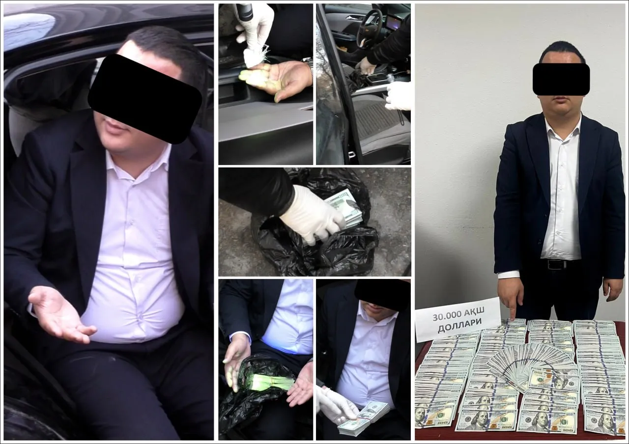 Davlat xavfsizlik xizmati, Iqtisodiy jinoyatlarga qarshi kurashish departamenti hamda Ichki ishlar organlari hamkorligida o‘tkazilgan tezkor tadbirda bank mansabdori kelishilgan pul mablag‘i hisobidan 30 ming AQSh dollarini oldindan olgan vaqtida ashyoviy dalillar bilan ushlangan.