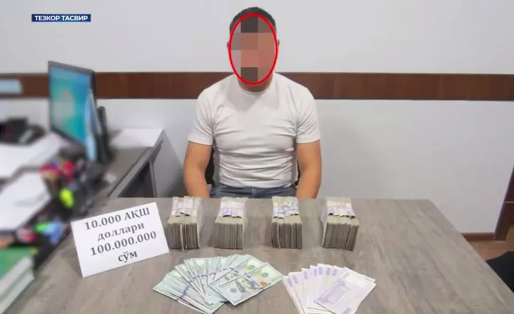 DXX Jizzax viloyati boʻyicha boshqarmasi xodimlari tomonidan Iqtisodiy jinoyatlarga qarshi kurashish departamentining hududiy boshqarmasi bilan hamkorlikda Gʻallaorol tumanida oʻtkazilgan tezkor tadbirda, u 10 ming AQSh dollari va 100 mln. soʻm olgan vaqtida ushlandi.