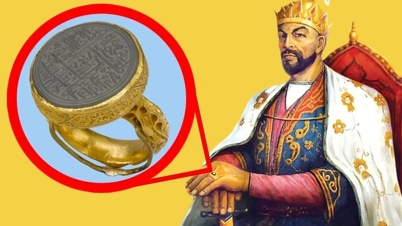 Amerika Qo‘shma Shtatlari shaharlaridan birida ilmiy-tidqiqot olib borayotgan tarixshunos olim, akademik Inoyotillo Shahroniy janoblarining ta’kidlashlaricha, bu uzuk sohibqiron Amir Temurga tegishli bo‘lib, uning gardishida quyidagi so‘z “Rosti-rusti” – “Kuch adolatdadir” iborasi borligini va boshqa belgilarni tahlil etadi. Aynan shu so‘zlar sohibqironga tegishli ekanligi tarixiy ma’lumotlar o‘z aksini topganligi hammaga ma’lum. Bu olimning fikricha, aslida bu uzuk ilk bor turk xoqoni O‘g‘uzxonga tegishli bo‘lgan. Ushbu bebaho durdona turk xoqonligi sulolalaridan avloddan-avlodga meros bo‘lib o‘tib, IX asrda Xolid Binni Barmak qo‘liga kelib tushganligi haqida ham rivoyat bor.