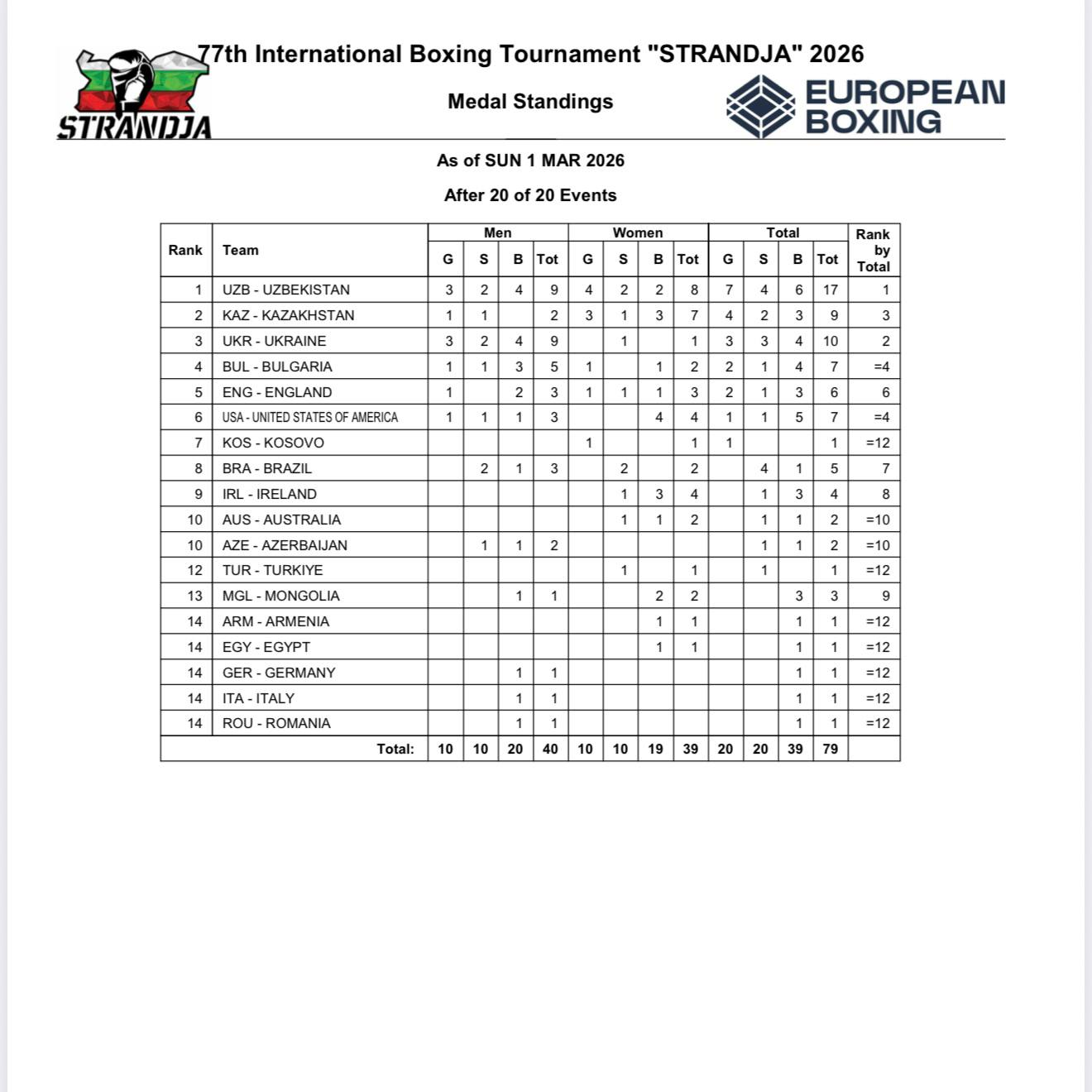Bolgariya poytaxti Sofiya shahrida 22-fevraldan 1-martgacha davom etgan “Stranja” xalqaro turniri yakuniga yetdi. Mazkur musobaqada O‘zbekiston erkaklar va ayollar terma jamoalari ajoyib natija ko‘rsatib, umumjamoa hisobida 1-o‘rinni qo‘lga kiritishdi.