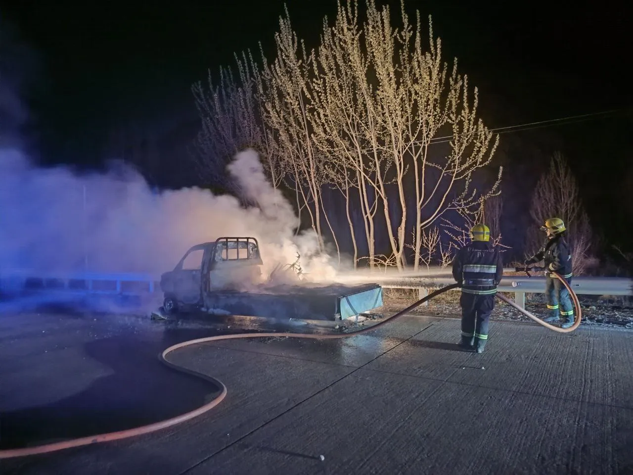 Kecha, 11-aprel kuni soat 21:53 da A-373 Toshkent–O‘sh avtomobil yo‘lining Qamchiq dovonidan o‘tgan qismida Toshkent—vodiy yo‘nalishida harakatlangan Changan rusumli avtotransport vositasida yong‘in yuzaga kelgan.