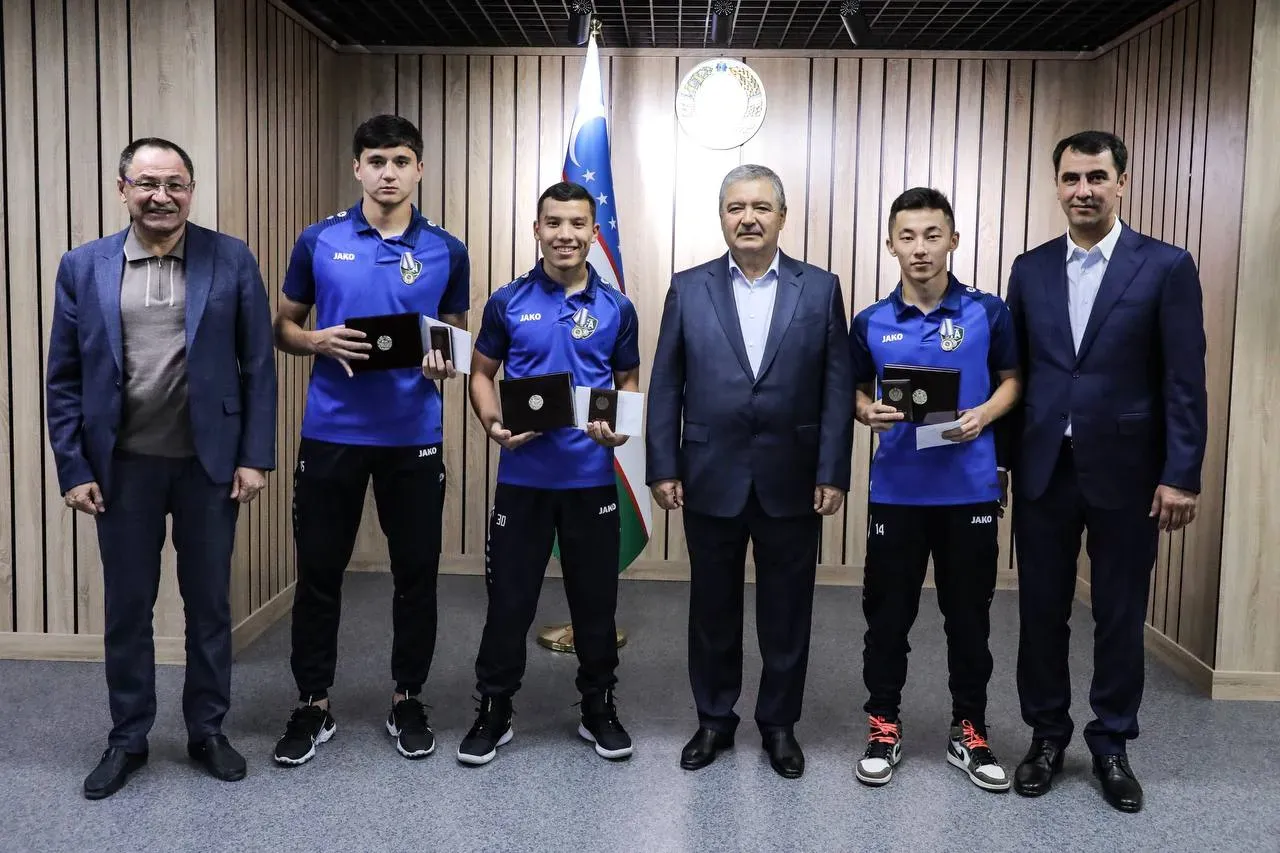 O‘zbekiston Resbublikasi Prezidenti Shavkat Mirziyoyev Farmoniga ko‘ra, “Kelajak bunyodkori” medaliga loyiq ko‘rilgan yoshlar va olimpiya terma jamoasi a'zolari Abbosbek Fayzullayev, Abduqodir Husanov hamda Umarali Rahmonaliyevga bugungi uchrashuvdan soʻng ushbu mukofotlar O‘FA rahbari Abdusalom Azizov tomonidan topshirildi.