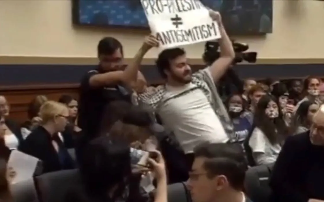 Respublikachilar boshchiligidagi AQSh Vakillar Palatasining 8-noyabr kuni o‘tkazilgan Adliya qoʻmitasining soʻz erkinligiga doir qarashlari hamda “O‘quv kampuslarida soʻz erkinligi” mavzusidagi tinglovi boshlangandan koʻp oʻtmay, falastinliklar huquqlarini himoya qiluvchi bir necha namoyishchilar zalda ko‘rinish bera boshlagan. Ular zalning o‘zida hibsga olinganliklari, aytilmoqda.
