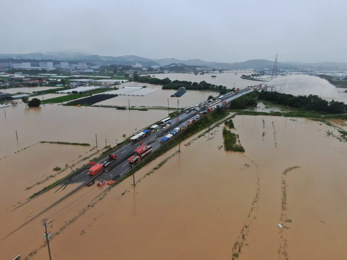 Seuldan taxminan 267 kilometr Janubda joylashgan Kvanju shahrida kuchli yomg‘ir haqida ogohlantirish e’lon qilinganidan so‘ng taxminan ikki soat davomida 87 ta yo‘l va 38 ta bino suv ostida qoldi.
