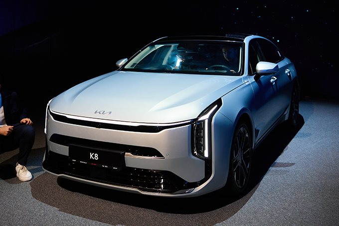 K8’ning tashqi ko‘rinishiga e’tibor berilganida uning tashqi tomonidagi o‘zgarishlar darhol ko‘zga tashlanadi. Old qism yangi bamperga ega bo‘ldi, u ham odatiy radiator panjarasi bo‘ylab cho‘zilgan va vizual ravishda kapotga o‘tib, yanada monolit va sportcha qiyofani hosil qiladi. Yaxshilangan aerodinamika havo qarshiligini kamaytirishga va yonilg‘i sarfini kamaytirishga yordam beradi.