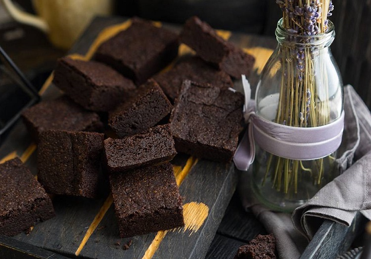 8. Brauni soviganidan keyin toʻrtburchak shaklda kesiladi va dasturxonga uzatiladi.