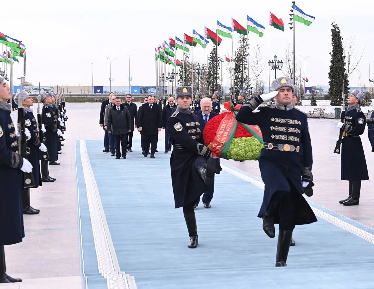 Rasmiy tashrif bilan mamlakatimizda bo‘lib turgan Belarus Respublikasi Prezidenti Aleksandr Lukashenko bugun, 8-fevral kuni O‘zbekiston Respublikasi Bosh vaziri Abdulla Aripov hamrohligida “Yangi O‘zbekiston” bog‘iga tashrif buyurib, Mustaqillik monumenti poyiga gul qo‘ydi.