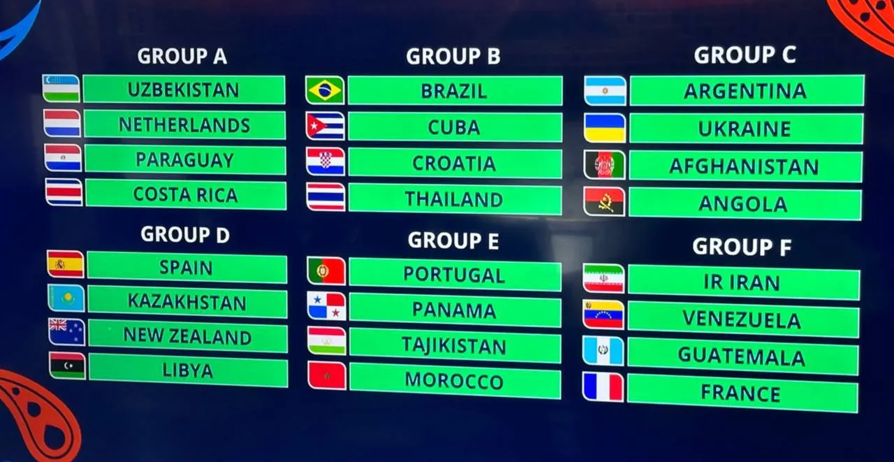 Shundan so‘ng qur’a tashlandi va jamoalar o‘z guruhlarini bilib olishdi. Unga ko‘ra, O‘zbekiston terma jamoasi “A” kvartetida Paragvay, Kosta-Rika va Niderlandiya jamoalari bilan bir guruhdan joy oldi. Ochilish o‘yini 14-sentyabr kuni O‘zbeksiton va Niderlandiya jamoalari o‘rtasida kechadi.