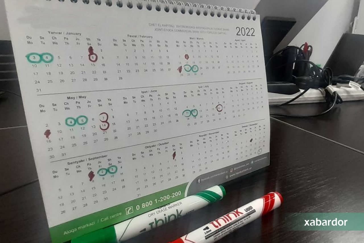 Farmonga muvofiq, 2022-yilda quyidagi dam olish kunlari belgilandi: