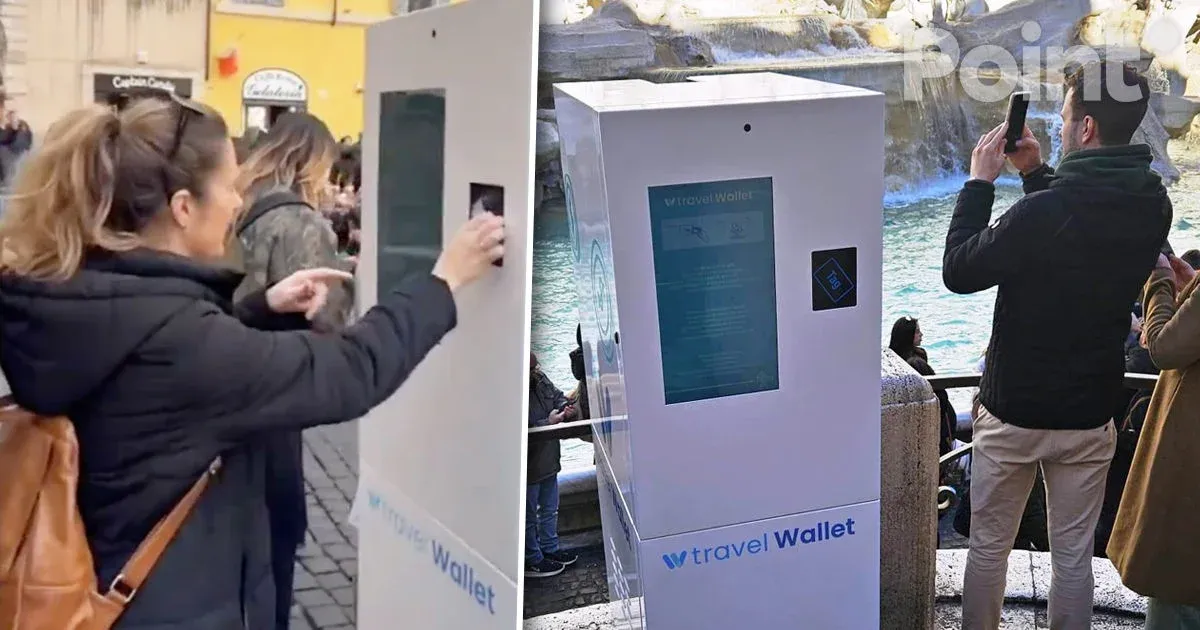 Rimdagi mashhur Trevi fontani yoniga o‘zlari bilan naqd pul va tanga olib yurmaydiganlar uchun bankomat o‘rnatildi — u bank kartasidan pulni yechib oladi va sizni o‘rningizga tangani suvga tashlaydi.