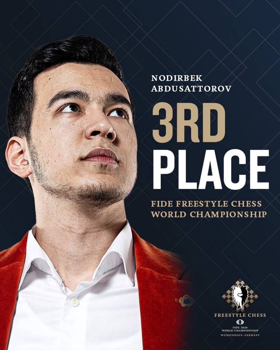 Germaniyaning Vayzenxaus kurortida shaxmat bo‘yicha nufuzli Freestyle Chess Jahon chempionatining so‘nggi kun bellashuvlari o‘tkazildi. Musobaqada O‘zbekiston sharafini himoya qilgan Nodirbek Abdusattorov 3-o‘rinni egalladi, Javohir Sindorov esa 7-o‘rin uchun bahsda Levon Aronyanga mag‘lub bo‘ldi.