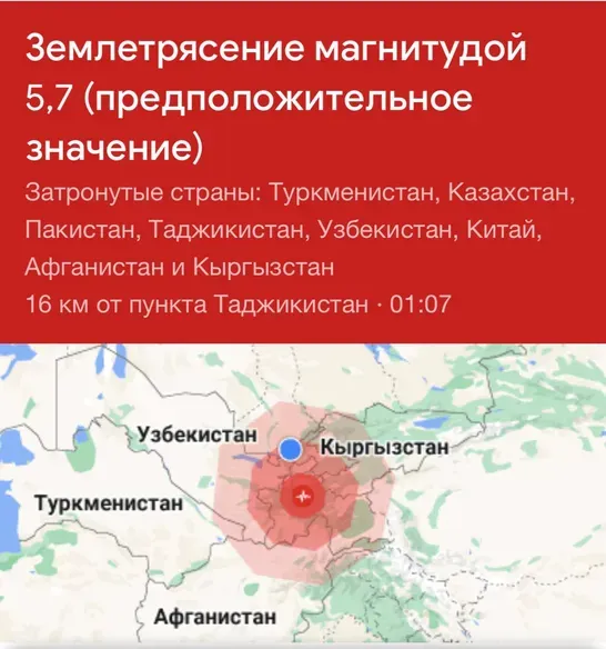 Episentr Tojikiston (magnituda 6 ball).