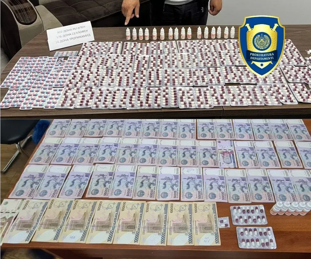 Bosh prokuratura huzuridagi Departamentning Chilonzor tuman bo‘limi tomonidan DXX xodimlari bilan hamkorlikda o‘tkazilgan tezkor tadbirda fuqaro R.X. 84 dona “Regapen” nomli kuchli ta’sir qiluvchi dori vositasini fuqaro M.M.ga 3,3 mln so‘mga sotgan vaqtida ushlanib, uning yonidan o‘tkazish maqsadida olib kelingan 738 dona “Regapen”, 176 dona “Selofen” va 16 dona “Tropikamid” nomli dori vositalari ashyoviy dalil sifatida olingan.