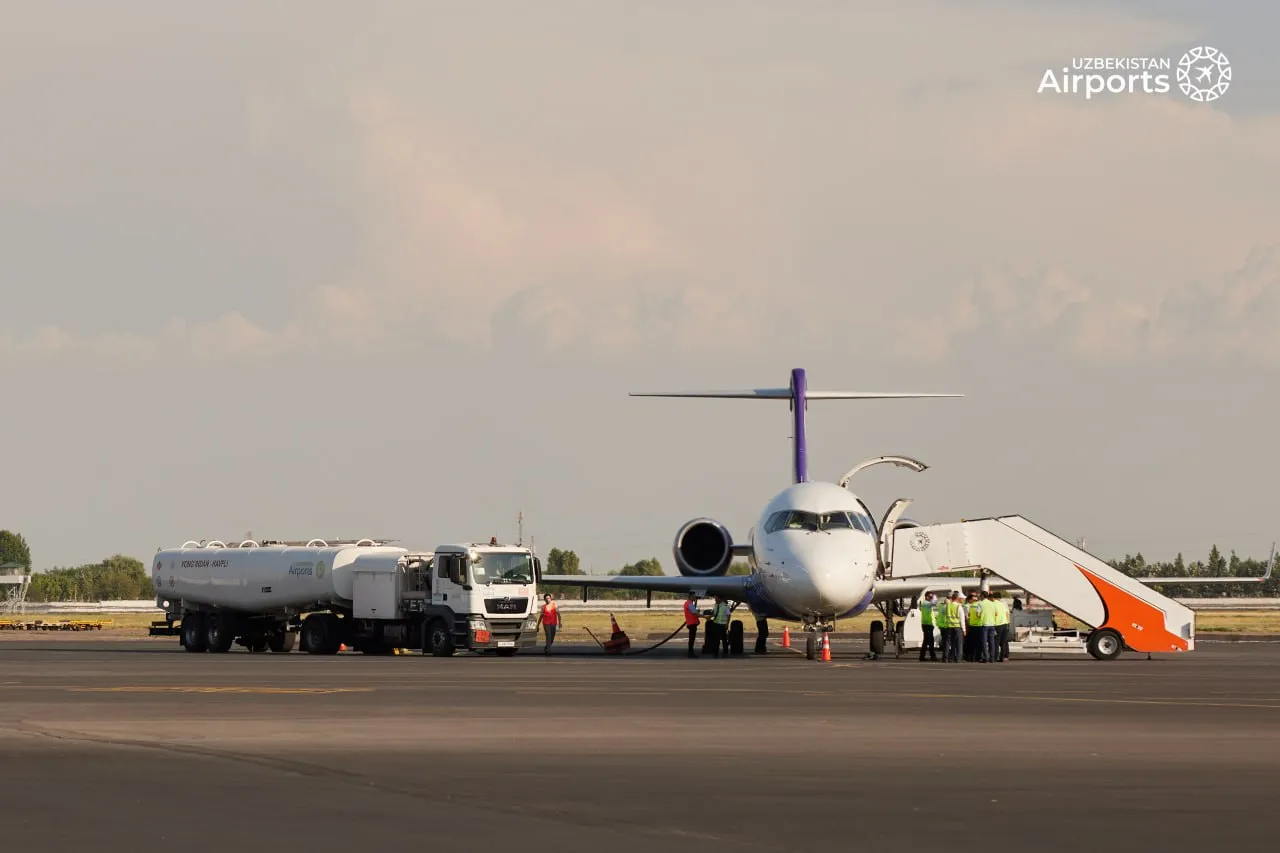 Xitoyning “Comac” ishlab chiqaruvchisining ARJ21-700 samolyoti mahalliy vaqt bilan soat 17:02 da Toshkent xalqaro aeroportiga qo‘ndi. An’anaga ko‘ra, samolyot suv arkasi bilan kutib olingan.