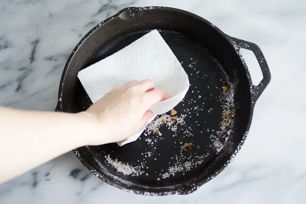 Judayam yogʻli tovani tozalamoqchi boʻlsangiz, tuz sizga yordam beradi. Uni tova tubiga qalin qilib seping va ozgina suv qoʻshib, olovda 5-10 daqiqa ushlang. Keyin esa oqib turgan issiq suvda osonlik bilan chayib yuborishingiz mumkin.
