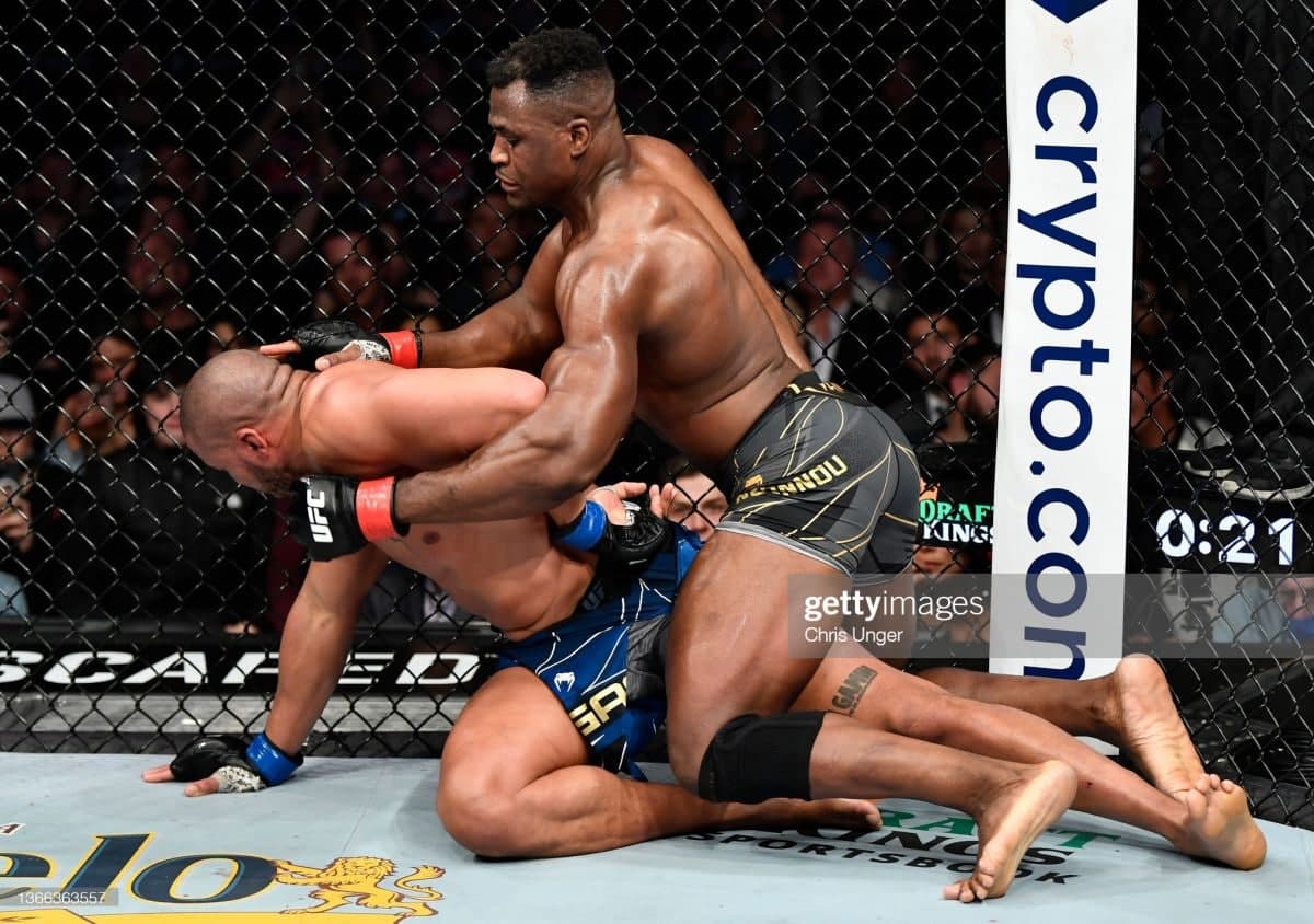 Kechaning markaziy jangida ogʻir vazn chempionlari Frensis Ngannu Siril Ganga qarshi oktagonga koʻtarildi.