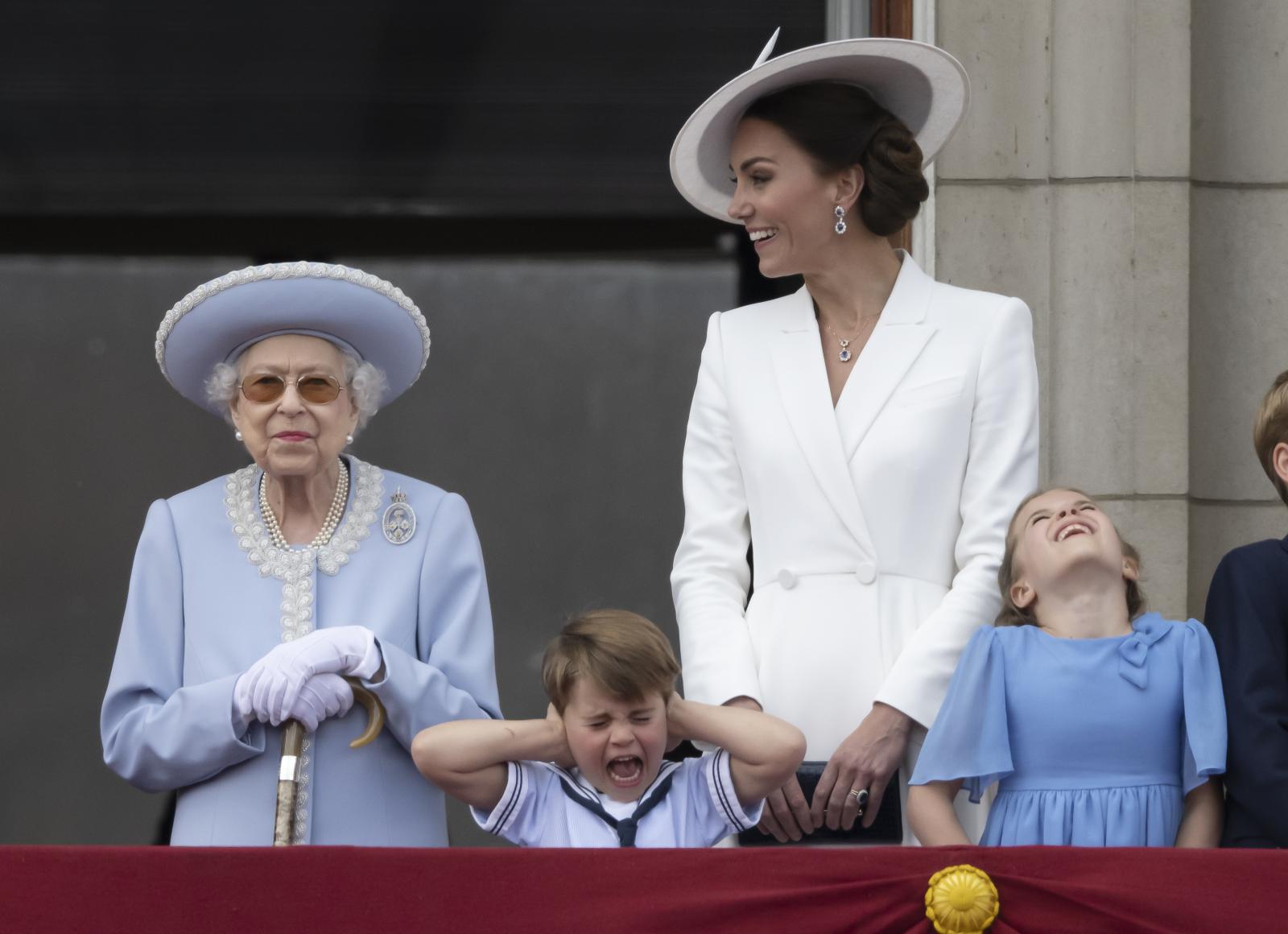 Qirollik oilasining aʼzolari birgalikda Bukingem saroyining balkonida koʻrinish berdilar. Uzoq davom etgan marosimda toliqqan Luining darhol injiqlik qilishga tushdi.